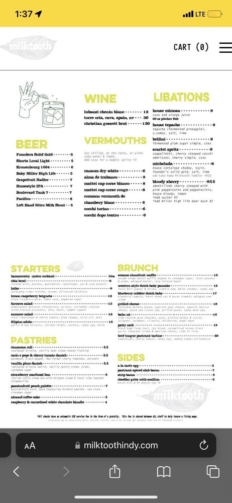 Welcome to Milktooth, a hipster cafe in Indianapolis that offers an array of breakfast and brunch options. This cozy spot provides a unique dining experience with its vegan and vegetarian-friendly menu, free Wi-Fi, and bottomless drip coffee options. The diverse selection of coffee and house specialties, such as the Caffe Shakerato and Matcha Cappuccino, cater to coffee lovers of all kinds. Customers rave about the creativity in the kitchen, locally sourced ingredients, and globally inspired dishes. The ambiance and attentive staff add to the overall dining experience, making Milktooth a must-visit for brunch enthusiasts. Don't miss out on their sourdough waffle or beignets - you'll be coming back for more. Come early to avoid long lines and indulge in mouthwatering dishes that showcase a perfect balance of flavors. Milktooth is where every bite is an experience to savor.